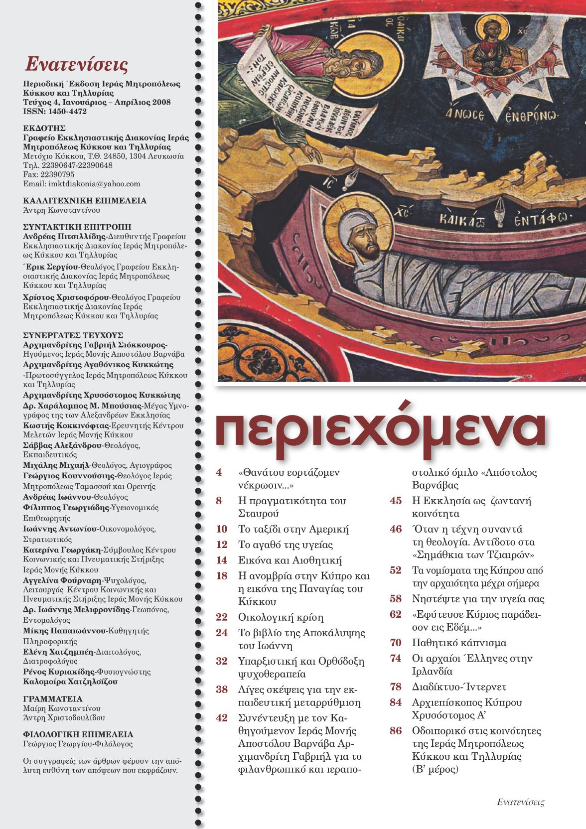 Ενατενίσεις | Τεύχος 04 Ιανουάριος - Απρίλιος 2008 | Ιερά Μητρόπολις Κύκκου και Τηλλυρίας - page 4